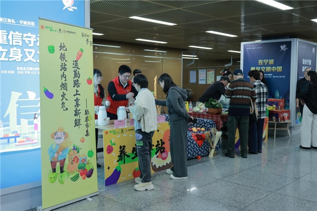 作为连接城乡的“地下枢纽”,地铁不仅是城市脉动的载体,更应成为乡村振兴的活力纽带。为响应国家“三农”工作号召,践行“地铁+商业”融合发展理念。11月6日,由3号线南部商务区站主办,鄞州团区委、南商团工委、中建八局浙江公司第二分公司、中国广电等属地单位共同协办的“地铁站内烟火气,通勤路上享新鲜”助农市集在3号线南部商务区站暖心开市,让通勤空间变身青年参与共富实践的“新舞台”。 此次活动受到中国青年网、甬派、鄞州新青年等媒体报道。