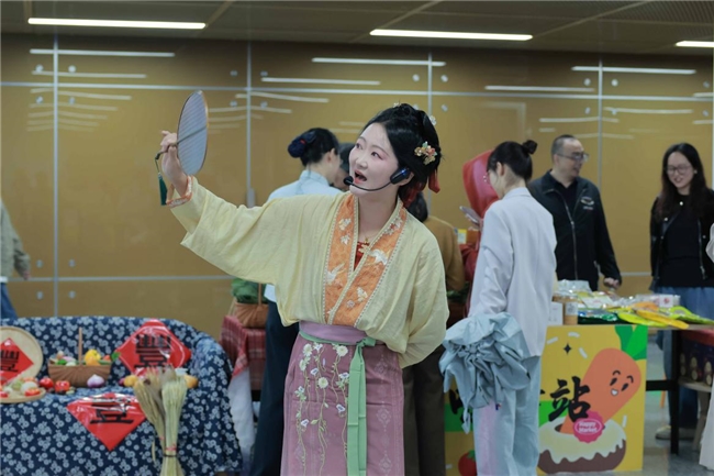 为进一步丰富青年精神文化生活,鄞州区文化特派员刘丽苑及小百花戏剧社,在“戏韵农耕场”摊位带来黄梅戏曲目“架上累累悬瓜果”。传统戏曲与现代农业主题的巧妙结合,让青年白领在通勤间隙既能欣赏到精彩的戏剧表演,又能感受到农耕文化的厚重与现代农业的蓬勃生机。